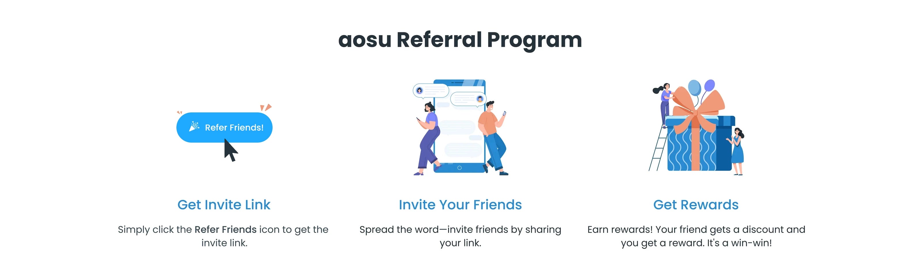 - If you’ve successfully invited someone (and they’ve placed orders), you’ll receive an email immediately include the coupon reward. You can use the discount code on aosulife.com. And on the 5th of each month you will receive an email to let you know the settlement of new rewards from the month before last.