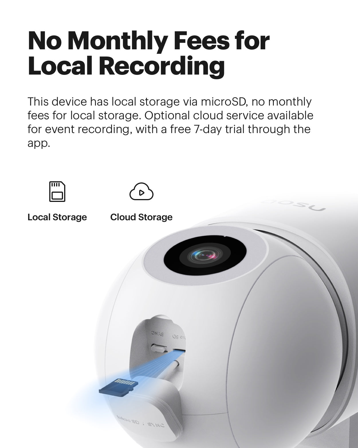 - No Monthly Fees: Store all your recordings directly on the device with micro USB local storage without need a subscription. *Optional cloud subscription available.