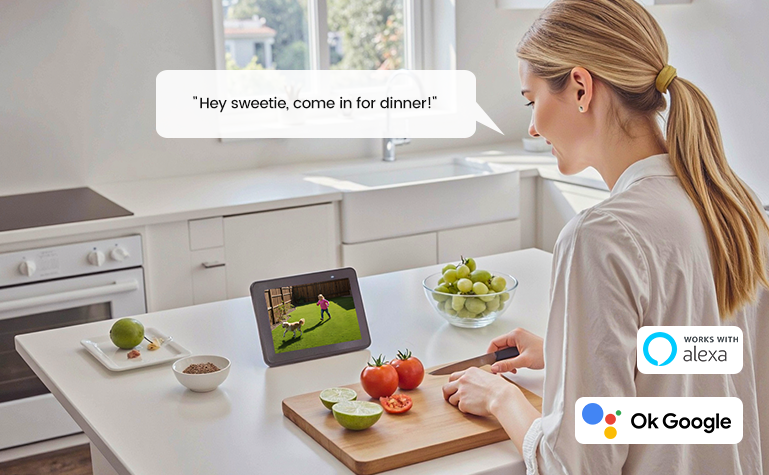 Connects to Alexa and Google Assistant so you can check in anytime to see what's going on around your home.
