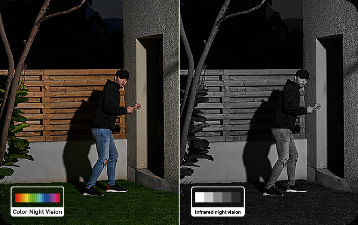 The dark is no match for this system. See faces and license plates clearly and in full color so you know who is coming or going.