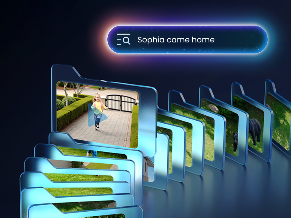 - Quick Search, Precise Results: Pinpoint specific moments, people, vehicles, and objects in your footage with a simple sentence.