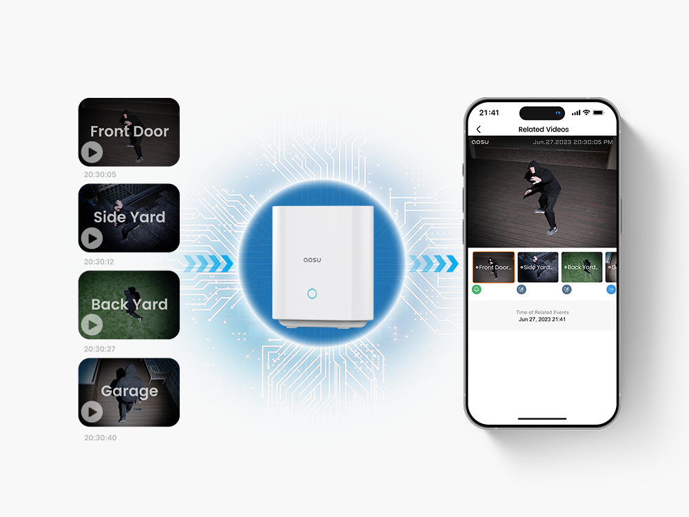 An event across multiple cameras can be tracked and synced to provide you one easy-to-view video.