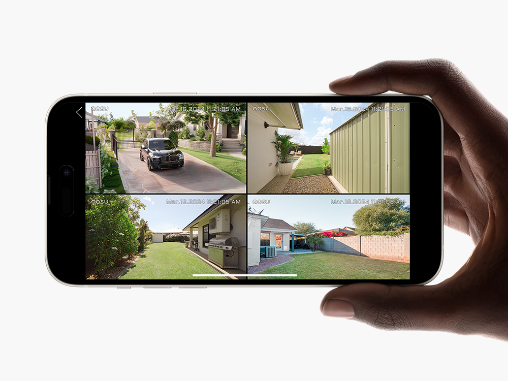 Automatically track events across multiple cameras, view up to 4 at once for complete property monitoring. -