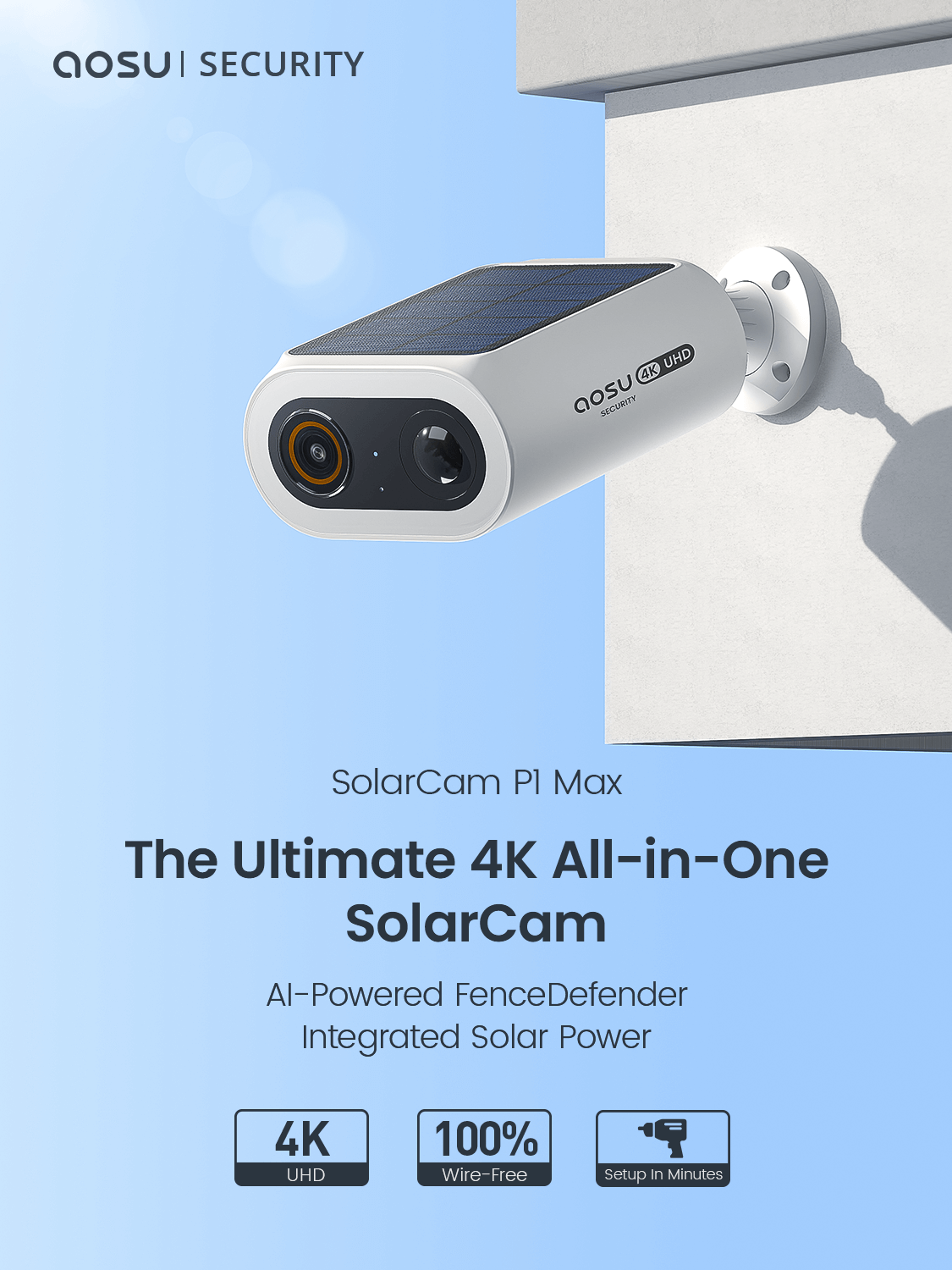 The integrated solar panel keeps the camera running continuously, eliminating the need for battery recharging or messy wiring.