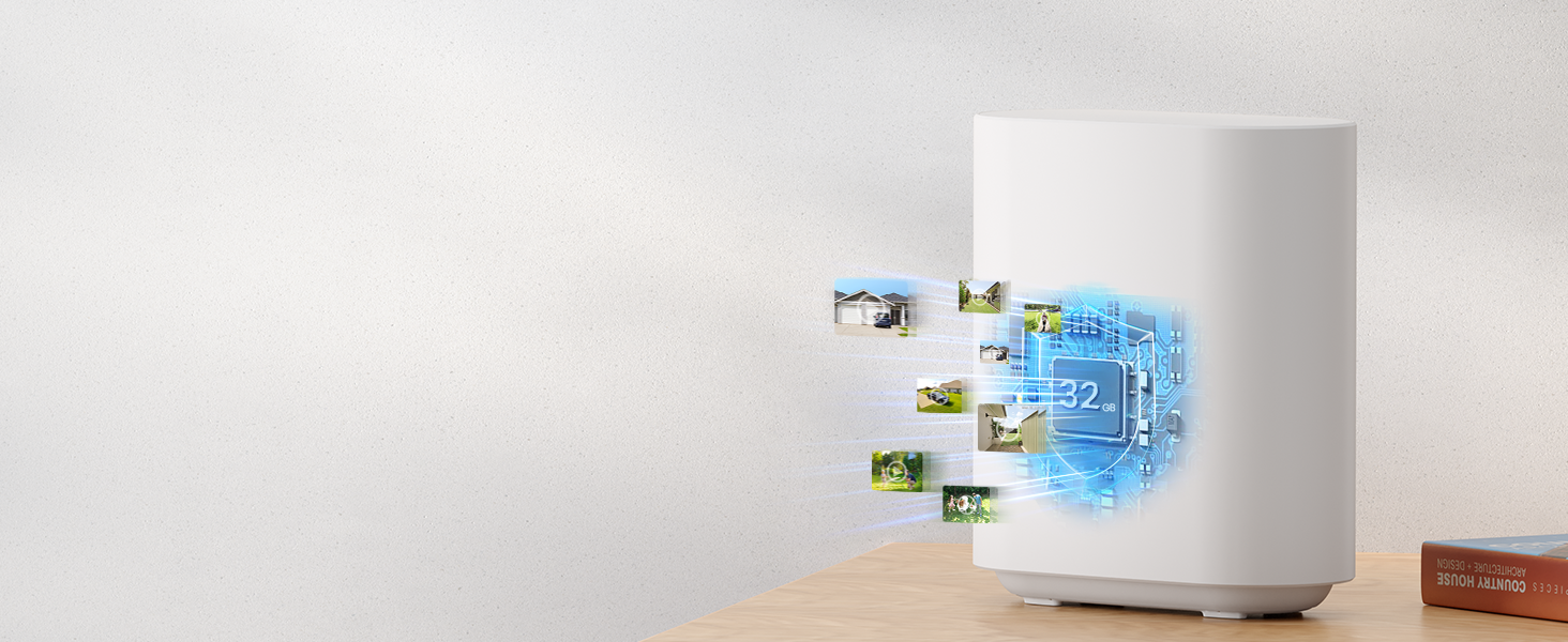 The Homebase offers 32GB of local storage, no monthly fees, and supports WiFi up to 650ft with stable signal. Cloud service is optional. -