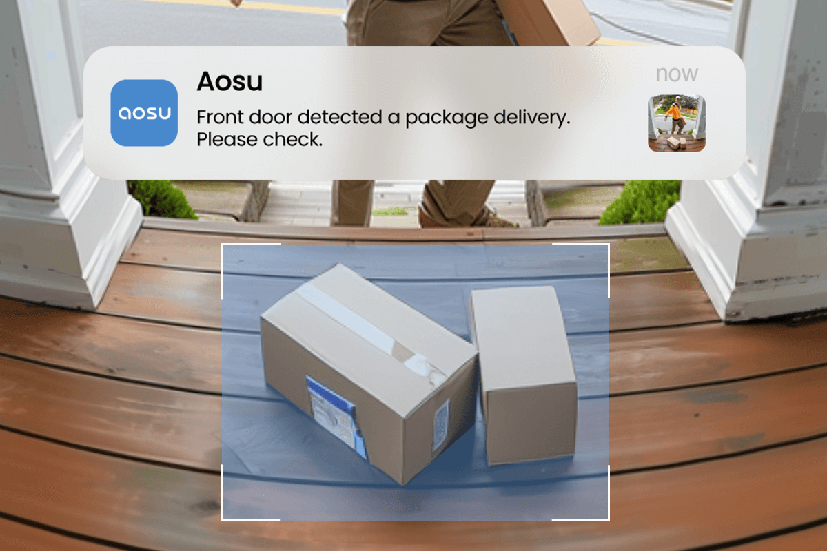 The camera detects packages at your door and sends an alert to notify you when a package has been delivered or someone wants to take it.