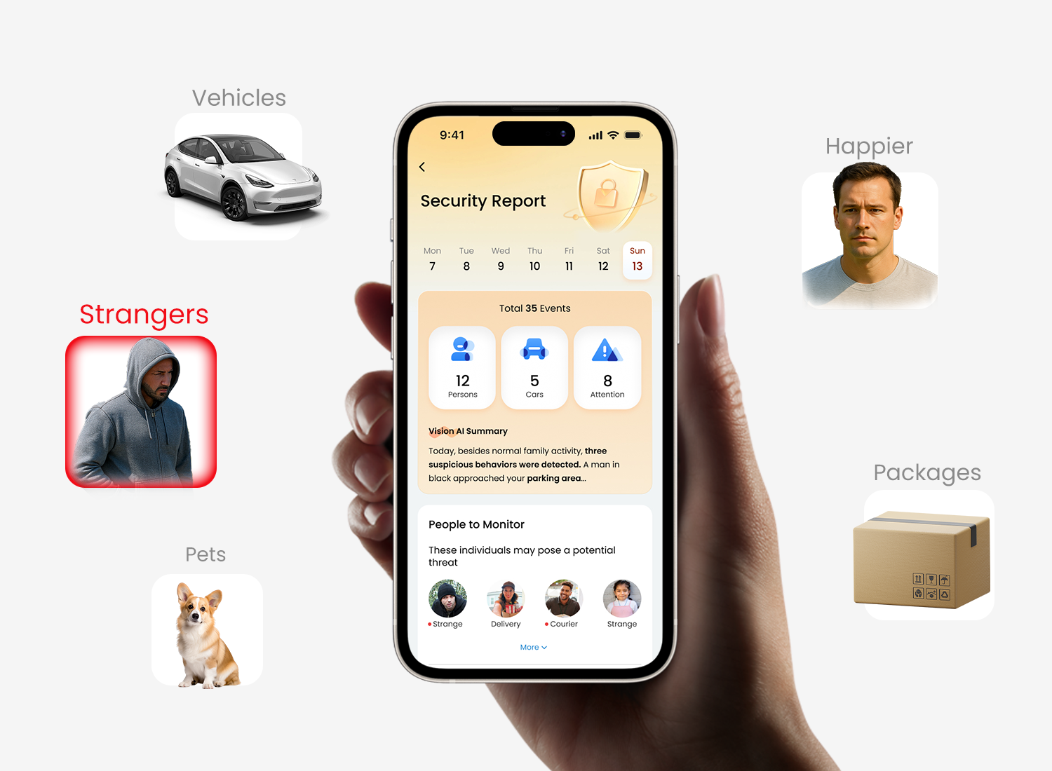 Easily track activities at a glance with summary reports of events and potential threats that happen around your home.