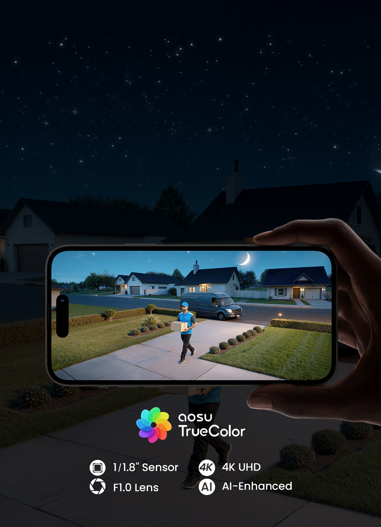 - 4K Color Night Vision with Evidence-Grade Clarity: F/1.0 aperture and 1/1.8" starlight sensor deliver full-color 4K footage—even in total darkness. Identify faces and plates clearly, day or night.