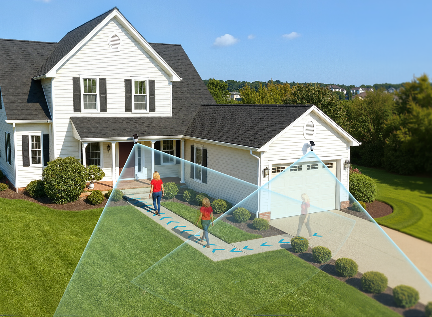 The cameras work together to follow movement around your property.