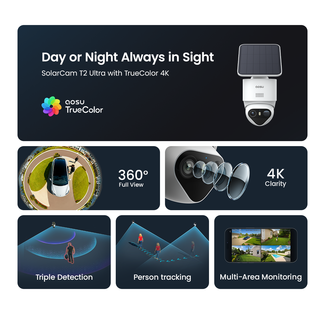 - Triple Detection, Smarter Alerts: PIR, radar, and AI detection reduce false alarms—alerting you only to real human activity.